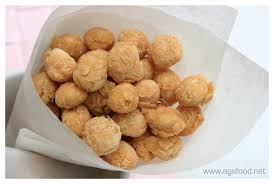 Kacang atom mentah digoreng di dalam banyak minyak panas (suhu 170°C)